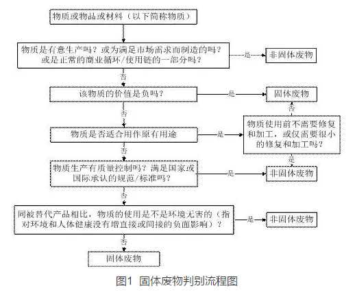 導(dǎo)則第三部分列出了“固體廢物與非固體廢物判別流程圖”(見圖1),該“流程圖”有5層判斷項(xiàng),其中有4個(gè)判斷項(xiàng)可以得出“非固體廢物”的屬性。其中在第2項(xiàng)判斷為“有價(jià)值”的基礎(chǔ)上的后續(xù)3個(gè)判斷,可以看做對(duì)于廣義價(jià)值的選擇和控制。即“基本保留原有用途的價(jià)值+符合相關(guān)產(chǎn)品標(biāo)準(zhǔn)+可直接用作替代產(chǎn)品,且使用過(guò)程環(huán)境無(wú)害”。
