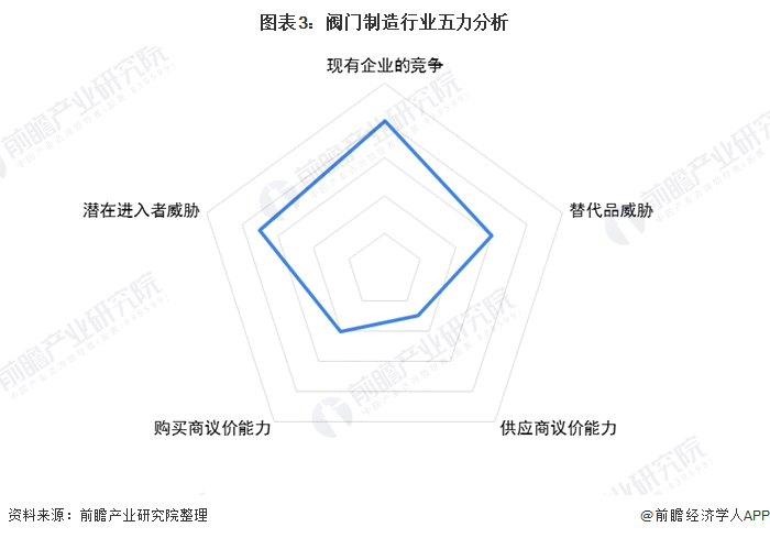 我國閥門制造行業(yè)對于上游原材料行業(yè)行業(yè)的議價能力較弱,國內(nèi)大量中低端產(chǎn)品處于價格競爭階段,行業(yè)對下游行業(yè)的議價能力較弱;隨著外資的不斷進入,其在品牌和技術方面均占優(yōu)勢,外資的進入將給國內(nèi)企業(yè)帶來巨大的威脅和壓力;閥門是通用機械的一種,通用機械產(chǎn)品的特性是通用性強、結(jié)構(gòu)較為簡單、操作方便,但高新技術產(chǎn)品具有機電一體化、高效、節(jié)能、耐腐蝕等特性,一般產(chǎn)品結(jié)構(gòu)簡單,易于模仿制造,會造成低水平重復建設及市場無序競爭,存在一定的替代品威脅。