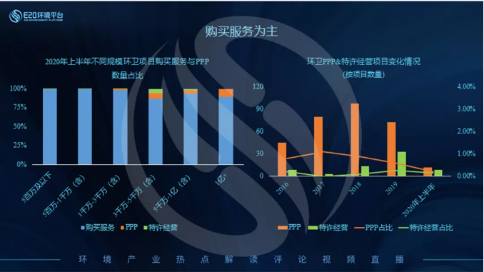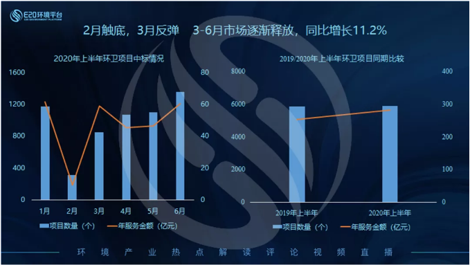1、和2019年同期相比,2020年上半年環(huán)衛(wèi)市場釋放項目數(shù)量有所增加,新增年服務金額總額較2019年同期增長11.2%,疫情壓制下逆勢上揚。