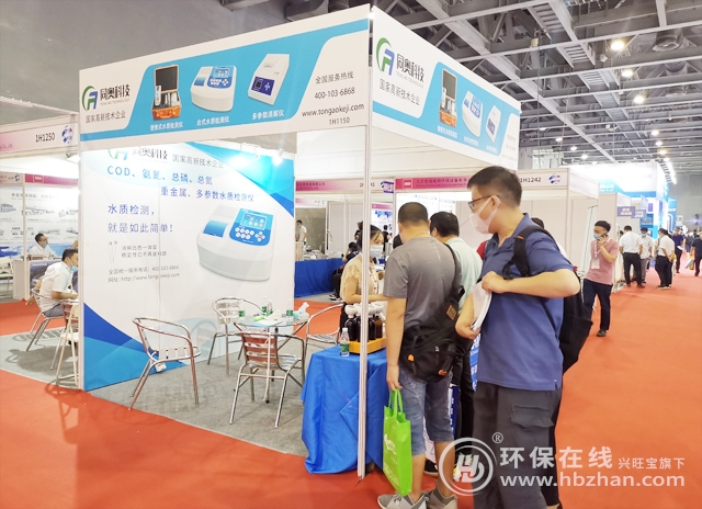 圖為廣東國(guó)際水展現(xiàn)場(chǎng) 參展觀眾駐足同奧科技展臺(tái)前