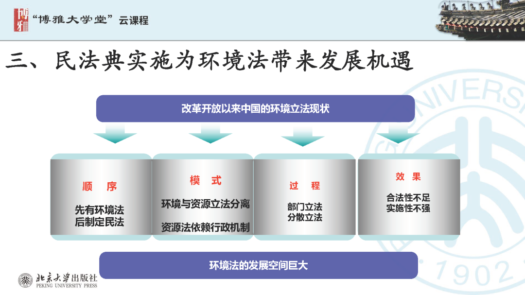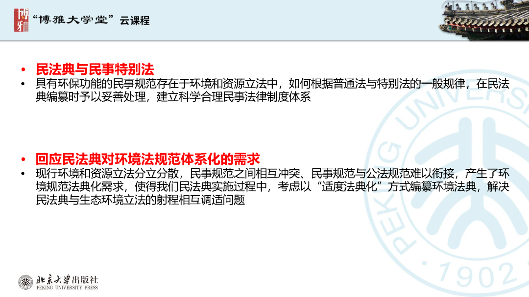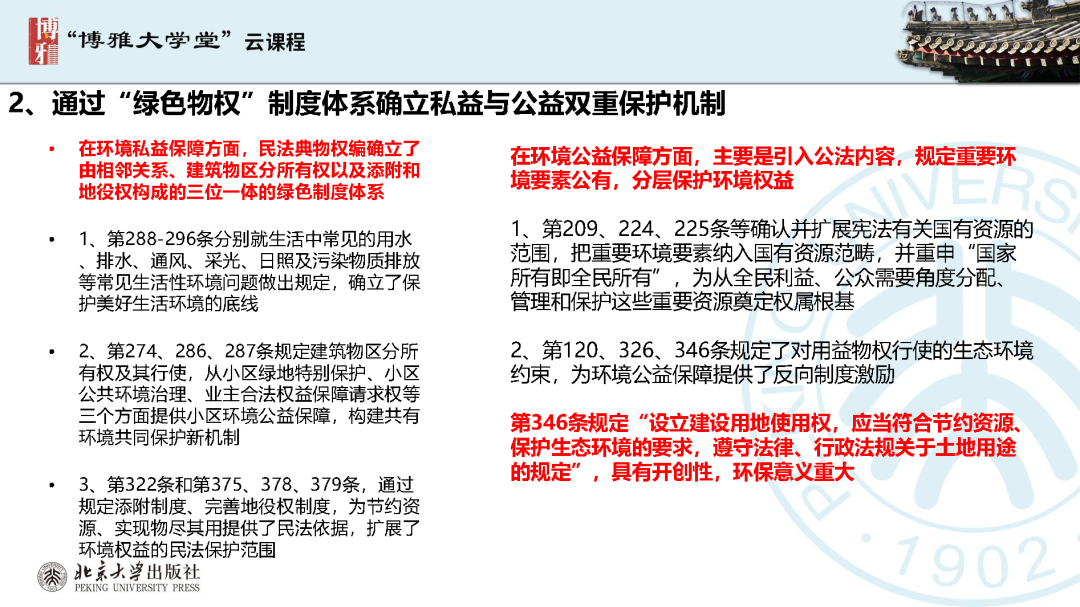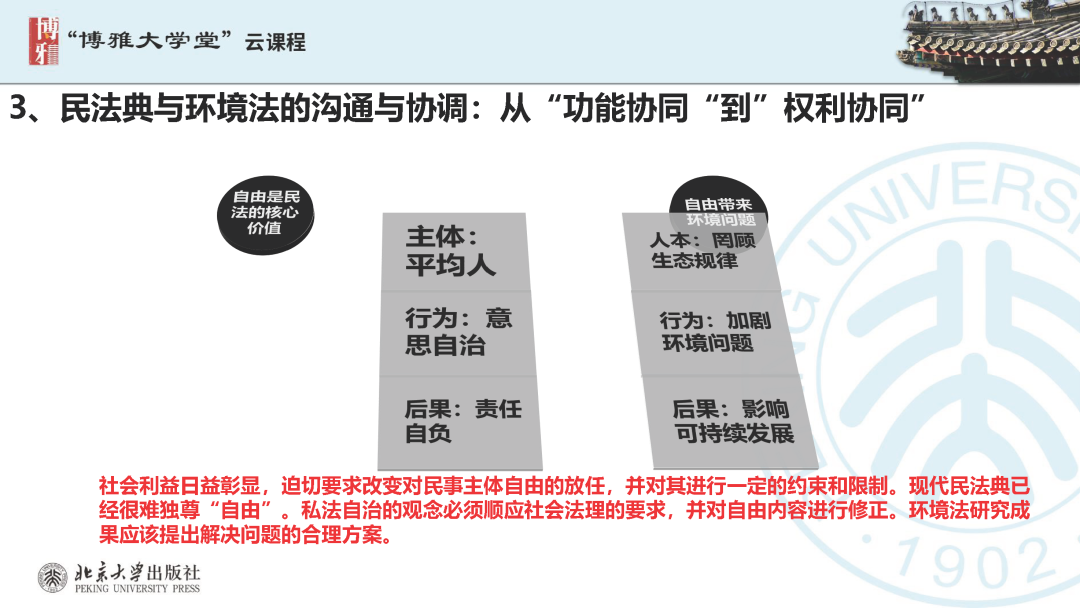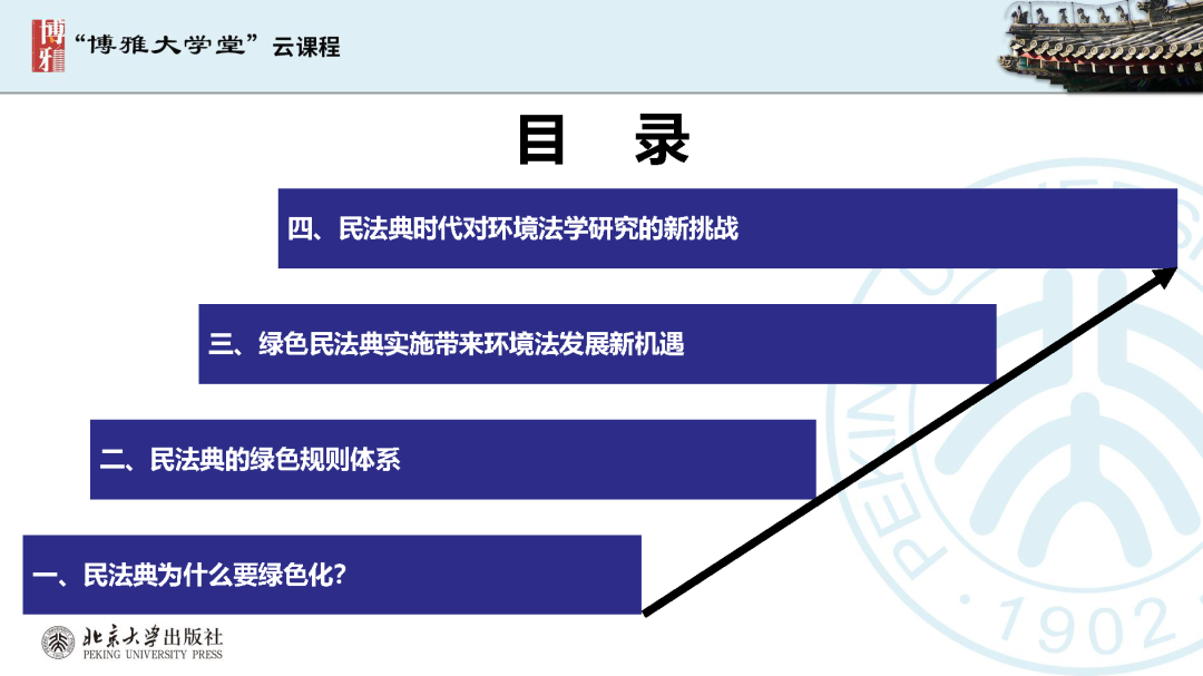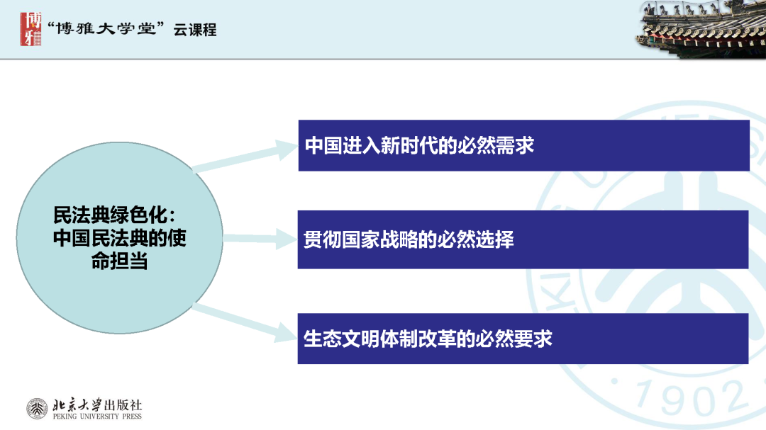 本文為?呂忠梅?老師在博雅大學(xué)堂上的報(bào)告。題目為《綠色民法典實(shí)施:環(huán)境法的機(jī)遇與挑戰(zhàn)》。內(nèi)容主要涉及民法典為什么要綠色化、民法典的綠色規(guī)則體系及綠色民法典給環(huán)境法帶來的新機(jī)遇和新挑戰(zhàn)。