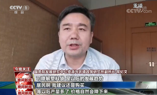 國(guó)務(wù)院發(fā)展研究中心資源與環(huán)境政策研究所副所長(zhǎng) 常紀(jì)文:可降解塑料袋是以后的發(fā)展趨勢(shì),我建議還是購(gòu)買。以后產(chǎn)量多了,價(jià)格自然會(huì)降下來(lái)??山到馑芰洗皇钦f(shuō)在任何條件下都是可以降解的,它的降解是有特定的條件。那么現(xiàn)在有一個(gè)管理上的難處,就是可降解塑料袋和我們一般使用的塑料袋,如果混在一起,都進(jìn)了垃圾焚燒發(fā)電廠了,那么可降解塑料袋要發(fā)揮作用是很難的。