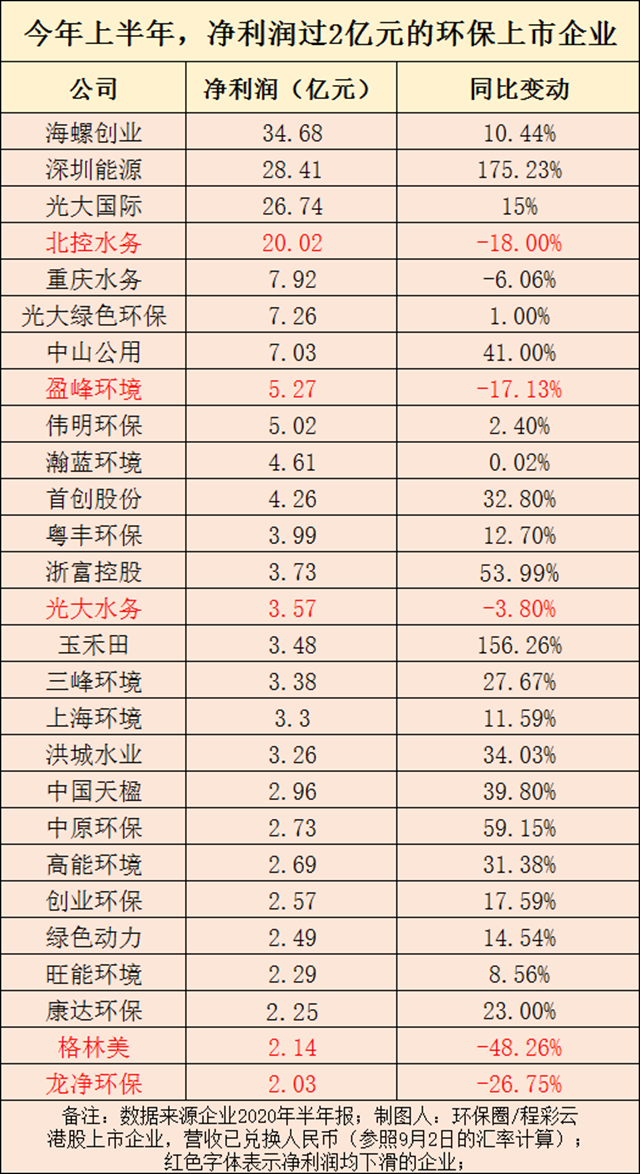 原標(biāo)題:100家環(huán)保上市公司中報(bào):近半數(shù)業(yè)績下滑,誰利潤增長311%?