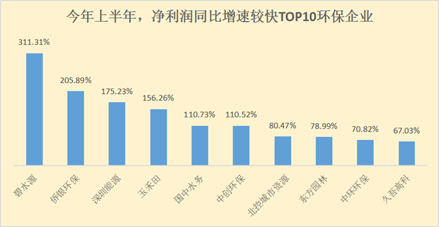 這一點(diǎn),在今年上半年?duì)I收、凈利潤同比增速較快的環(huán)保企業(yè)中均有體現(xiàn)。