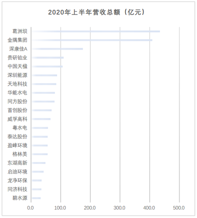 2020年上半年A股環(huán)保上市公司環(huán)保營(yíng)收TOP20