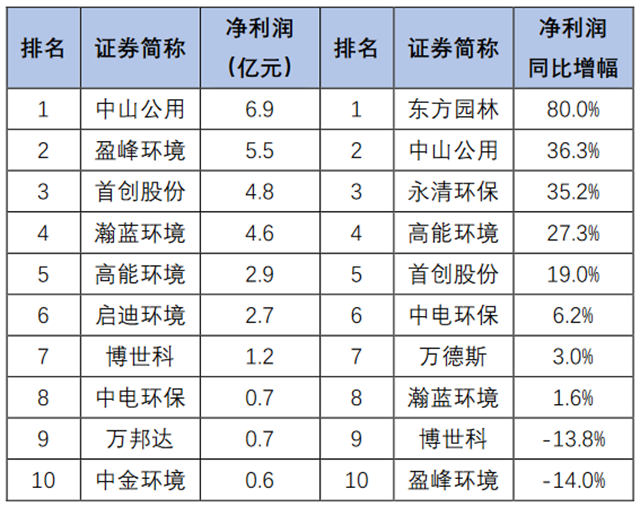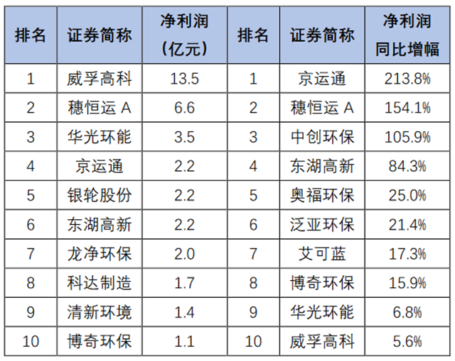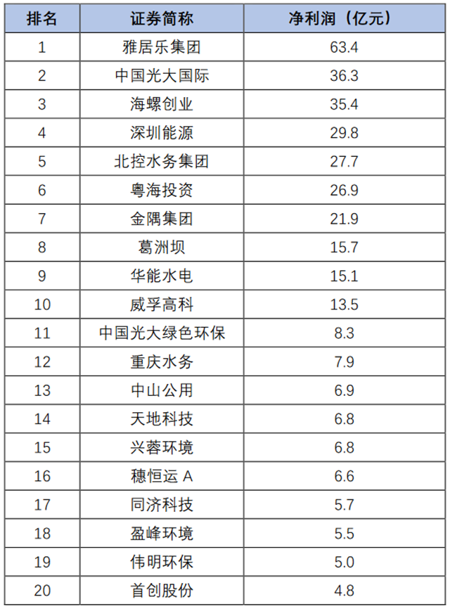 2020年上半年163家(A股+港股)環(huán)保上市公司凈利潤(rùn)TOP20