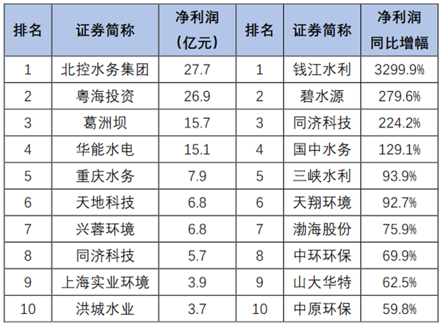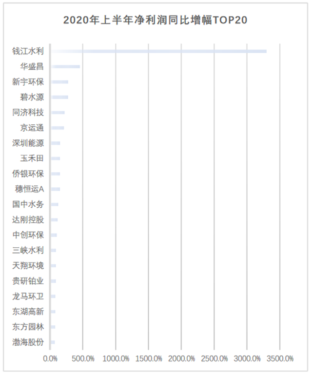2020年上半年水務(wù)(A股+港股)環(huán)保上市公司凈利潤(rùn)及其同比增幅TOP10