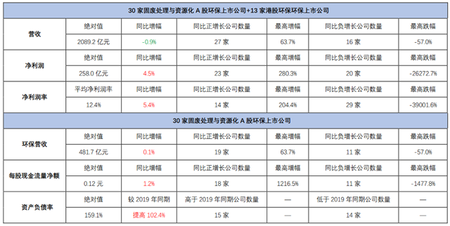 總體來(lái)看,環(huán)保上市公司在成長(zhǎng)性方面的表現(xiàn)受疫情影響,環(huán)保營(yíng)收和營(yíng)收均同比降低。