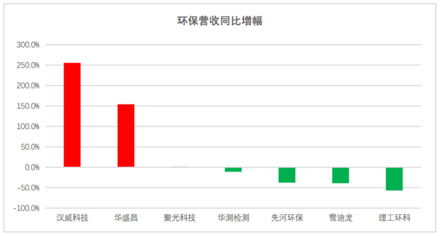 2020年上半年環(huán)境監(jiān)測(cè)與檢測(cè)A股環(huán)保上市公司環(huán)保營(yíng)收同比增幅排名