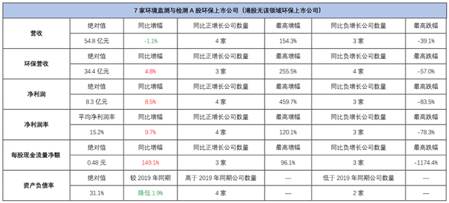 2020年上半年環(huán)境監(jiān)測(cè)與檢測(cè)環(huán)保上市公司主要業(yè)績(jī)指標(biāo)