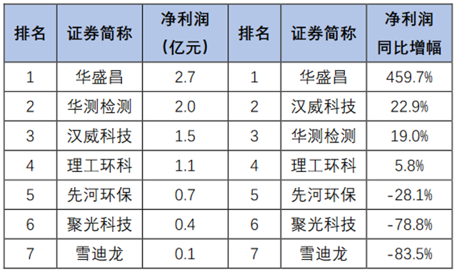 2020年上半年環(huán)境監(jiān)測(cè)與檢測(cè)A股環(huán)保上市公司凈利潤(rùn)及其同比增幅排名