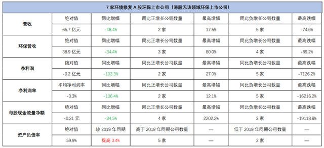 環(huán)境修復(fù)領(lǐng)域(7家):營(yíng)收和環(huán)保營(yíng)收規(guī)模均收縮,獲利能力大幅下滑,現(xiàn)金流情況不及上年同期,負(fù)債水平上升。
