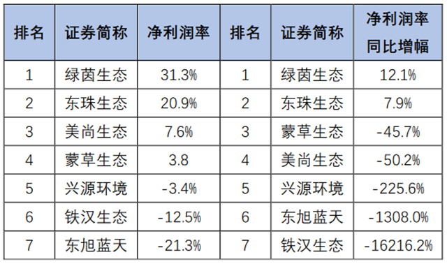 總體來(lái)看,環(huán)保上市公司獲利表現(xiàn)不及2019年同期,凈利潤(rùn)總額和平均凈利潤(rùn)率均低于上年同期。