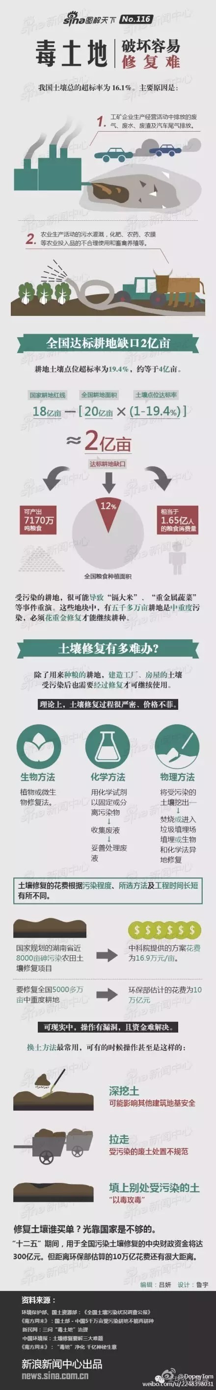 2016-12-09 全球農(nóng)業(yè)趣聞英媒稱,中國(guó)將展開全國(guó)性調(diào)查,以查明重金屬、化學(xué)物質(zhì)和其他有毒污染物熱點(diǎn)區(qū)域。目前中國(guó)正試圖清理土壤污染,這可能需要投入1萬(wàn)億美元。