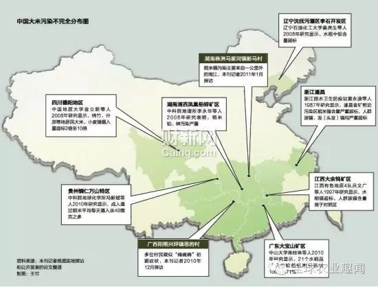 財(cái)新網(wǎng)記者根據(jù)實(shí)地探訪和公開發(fā)表的論文,整理出了一份《中國(guó)大米污染不完全分布圖》。該分布圖顯示,遼寧、湖南、浙江、江西、四川、貴州、廣東、廣西等省份的部分地區(qū),不同程度地存在重金屬污染問(wèn)題,其中絕大多數(shù)都存在鎘污染,并且以廠礦地區(qū)為主。