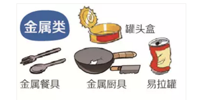 日常生活中扔的最多的金屬類垃圾應(yīng)該就是易拉罐了吧?圖上畫的這些是可回收的,千萬不要當(dāng)做廚余垃圾哦~