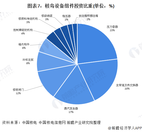 據(jù)中國(guó)核電和中國(guó)核電信息網(wǎng)的披露,一般而言,核島設(shè)備中,壓力容器、主管道及熱交換器、蒸汽發(fā)生器都是投資的重點(diǎn),其中壓力容器占比為23%,主管道及熱交換器占比為20%,蒸汽發(fā)生器占比為17%,核電閥門(mén)占比大概為12%。