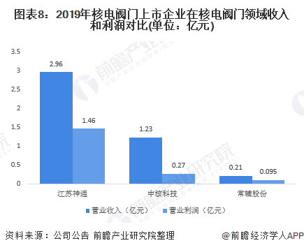 從上市的核電閥門(mén)企業(yè)分析,2019年江蘇神通在核電閥門(mén)產(chǎn)品中實(shí)現(xiàn)營(yíng)業(yè)收入2.96億元,營(yíng)業(yè)利潤(rùn)1.46億元,相較于中核科技和常輔股份而言擁有較大的銷(xiāo)售競(jìng)爭(zhēng)力。