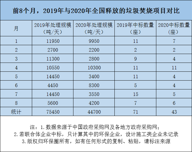 從定標(biāo)數(shù)量看,今年八個(gè)月,全國(guó)累計(jì)中標(biāo)了43座垃圾焚燒項(xiàng)目,相比去年的71座,也減少了28座,中標(biāo)數(shù)量也同比下降了40%。