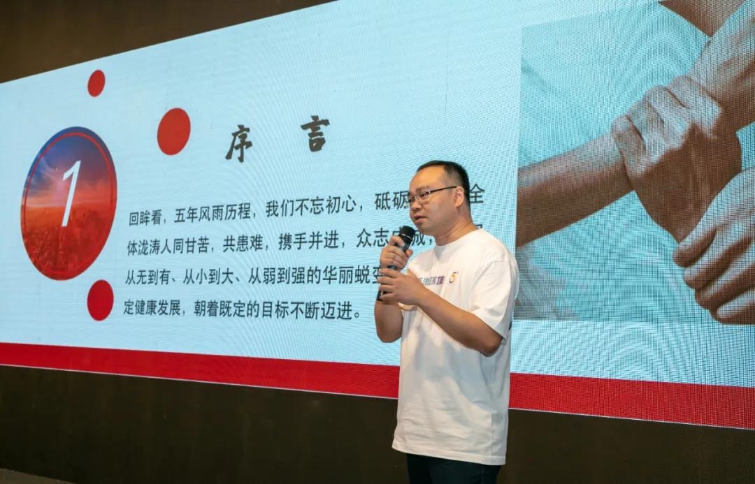董事長(zhǎng)潘濤回顧了瀧濤環(huán)境5年來(lái)的發(fā)展歷程,對(duì)攜手并肩、一路走來(lái)的瀧濤家人們表示衷心的感謝和祝福,介紹了公司成立的初衷與使命,即“以創(chuàng)新環(huán)境科技打造碧水藍(lán)天,為員工不斷進(jìn)步提供成長(zhǎng)平臺(tái)”,并重申了“成為環(huán)境領(lǐng)域技術(shù)與服務(wù)的領(lǐng)先者”的愿景。