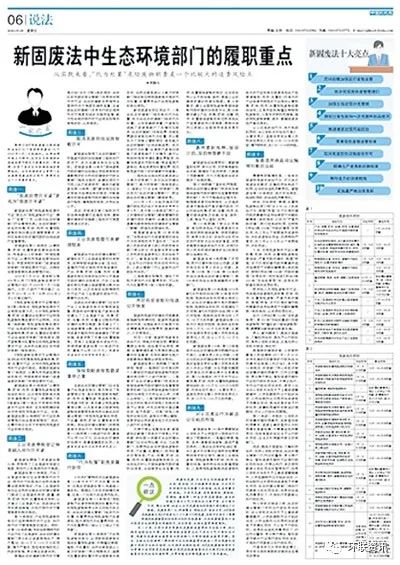 圖為中國環(huán)境報(bào)報(bào)2020年9月4日六版,對(duì)新固廢法中生態(tài)環(huán)境部門的履職重點(diǎn)進(jìn)行了梳理和解讀。