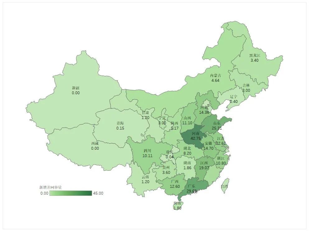 圖 2 2020年前三季度生物質(zhì)發(fā)電各省新增裝機(jī)容量(萬(wàn)千瓦)