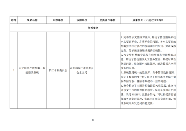 為及時(shí)總結(jié)先行先試經(jīng)驗(yàn),提煉形成可復(fù)制可推廣成果,加快推進(jìn)智慧水利,根據(jù)《水利部關(guān)于開(kāi)展智慧水利先行先試工作的通知》(水信息〔2020〕46號(hào))要求,水利部網(wǎng)信辦近期組織完成智慧水利先行先試中期檢查評(píng)估工作,同步開(kāi)展了智慧水利先行先試成果申報(bào)與評(píng)選。11家先行先試單位積極響應(yīng),共申報(bào)先行先試成果49項(xiàng),經(jīng)技術(shù)指導(dǎo)人初評(píng)、征求業(yè)務(wù)司局業(yè)務(wù)指導(dǎo)人意見(jiàn)、責(zé)任專(zhuān)家審核、集中評(píng)審?fù)镀钡拳h(huán)節(jié),并經(jīng)部長(zhǎng)專(zhuān)題辦公會(huì)審議,形成智慧水利先行先試成果目錄(2020年度)(共10項(xiàng)最佳實(shí)踐和8項(xiàng)優(yōu)秀案例,排名不分先后)。現(xiàn)將成果目錄及相關(guān)信息予以公示,如有異議,請(qǐng)?jiān)诠酒趦?nèi)以實(shí)名書(shū)面形式反饋我辦。