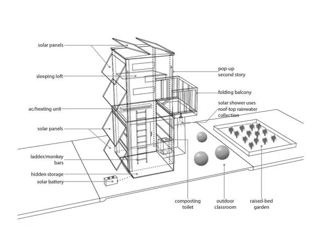屋頂設(shè)計(jì)成三角形,不僅可以自由移動(dòng)給室內(nèi)通風(fēng),還內(nèi)藏太陽能發(fā)電板。
