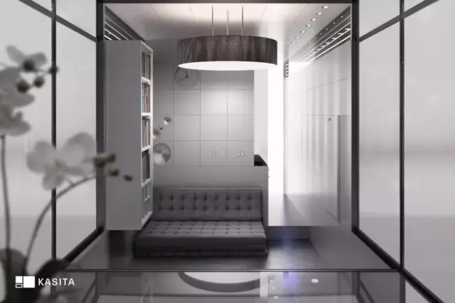 樣板房看上去還是垃圾箱的形狀,格調(diào)卻要高很多。用特殊玻璃SageGlass制成的落地窗,不僅看起來高端大氣上檔次,還能根據(jù)室外陽光強(qiáng)度自動(dòng)遮光。
