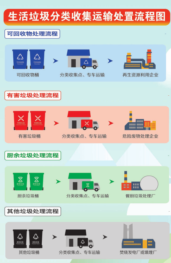 其他垃圾:委托有經(jīng)營資質(zhì)的企業(yè)進行收運和處理,一般為環(huán)衛(wèi)作業(yè)企業(yè)。