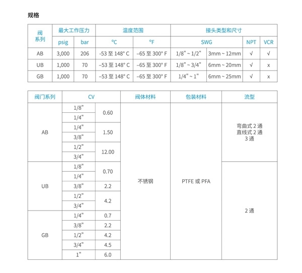 產(chǎn)品尺寸規(guī)格齊全,有304,316不銹鋼以及合金鋼等多種材質(zhì)可選,接口有卡套、螺紋、焊接等多種形式可選。