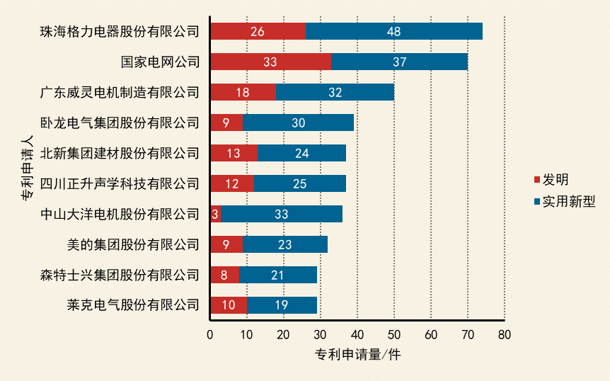中國企業(yè)在該技術(shù)領(lǐng)域?qū)@暾堃詫?shí)用新型為主,大部分企業(yè)實(shí)用新型專利申請量占比60%以上,企業(yè)類型集中于電氣企業(yè),以機(jī)械噪聲控制居多。