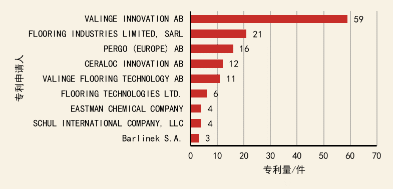 物理污染控制技術(shù)領(lǐng)域核心專利持有機(jī)構(gòu)有:VALINGE INNOVATION AB、FLOORING INDUSTRIES LIMITED, SARL、PERGO (EUROPE) AB、CERALOC INNOVATION AB、VALINGE FLOORING TECHNOLOGY AB。
