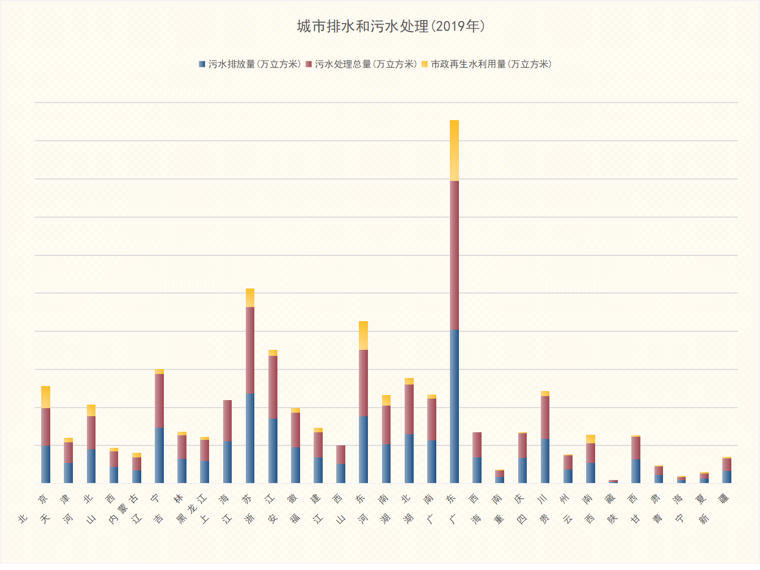此外,就2019年來看,全國城市污水排放量和污水處理總量最大的都是廣東,分別為808534.64萬立方米和782028.1萬立方米。