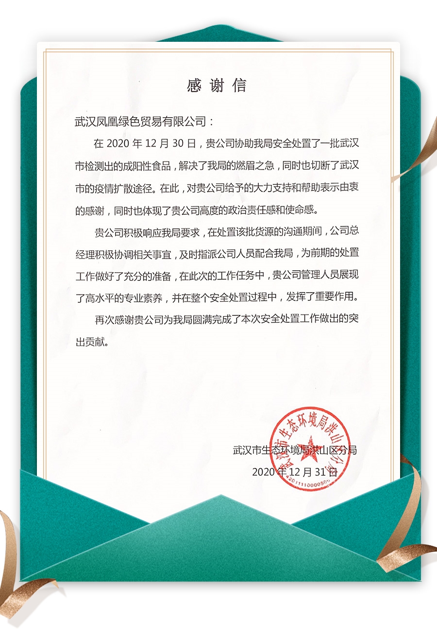 事后,武漢市生態(tài)環(huán)境局向武漢鳳凰項目發(fā)來感謝信,信中表示,在此次工作任務中,武漢鳳凰項目體現出了高度的政治責任感和使命感,展現出高水平的專業(yè)素養(yǎng),發(fā)揮了重要作用。