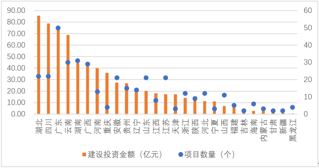 1月,全國(港澳臺未統(tǒng)計)共有27個省(區(qū)、市)啟動水務項目。從建設投資金額來看,位列前3的省份為湖北、四川、廣東,均在75億元以上,其中,湖北建設投資金額超85億元;從項目數(shù)量來看,位列前3的省份為廣東、湖南、云南3省,均超過30個(含30個)。