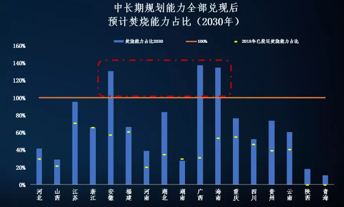 我們認(rèn)為在未來5~10年的生活垃圾焚燒市場中將更多的充斥著小體量的縣鎮(zhèn)項(xiàng)目,大項(xiàng)目、好項(xiàng)目將減少。另一方面,我們對各省中長期規(guī)劃的本底值可靠性進(jìn)行了進(jìn)一步考察,發(fā)現(xiàn)有些省份若以起中長期規(guī)劃推演,至其規(guī)劃期截止,若全部規(guī)劃能力兌現(xiàn),焚燒能力已經(jīng)超過了當(dāng)?shù)厣罾a(chǎn)生總量的100%。若該省份人口不能如長三角和珠三角地區(qū)在未來發(fā)生強(qiáng)烈吸納作用,則實(shí)際上仍存在落地風(fēng)險(xiǎn)。