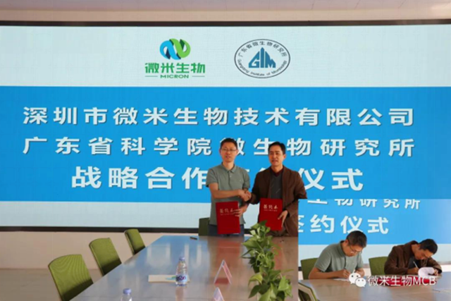 2021年3月26日,深圳市微米生物技術(shù)有限公司總經(jīng)理陳學(xué)明和廣東省科學(xué)院微生物研究所代表姚青教授和謝小林博士分別代表雙方簽約。