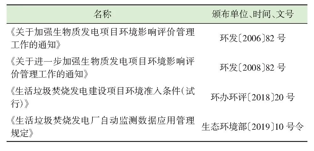 表4 垃圾焚燒發(fā)電行業(yè)污控監(jiān)管類重點政策