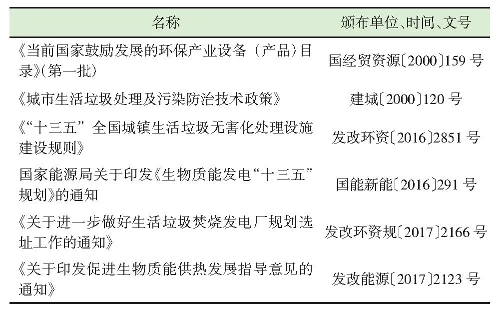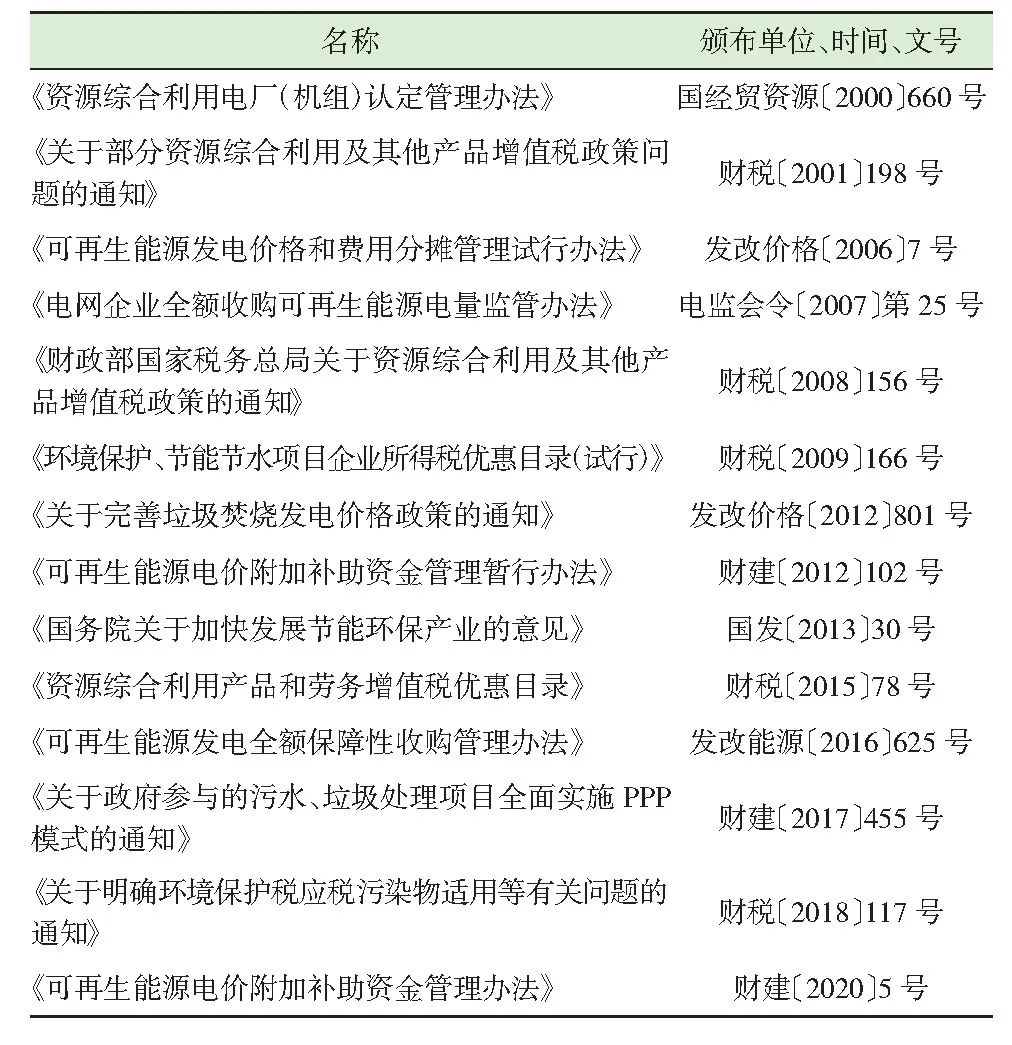 表2 垃圾焚燒發(fā)電行業(yè)財稅類重點政策
