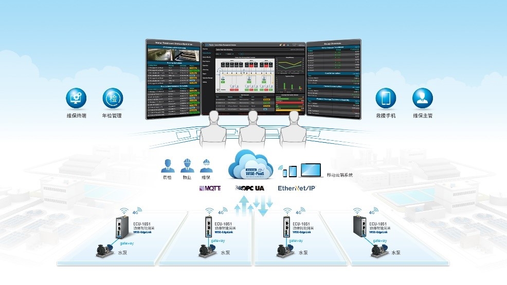 當前很多的泵站監(jiān)控仍以人工方式進行現(xiàn)場啟停,誤操作/延遲操作等情況時有發(fā)生,導致監(jiān)測不精準,監(jiān)管不到位,事故頻發(fā)。研華ECU-1051系列智能網(wǎng)關支持多種型號的PLC控制器的數(shù)據(jù)采集,并可以通過MQTT協(xié)議直接對接運營商所選的云平臺Webaccess為BS架構組態(tài)軟件,有效采集、展示、分析數(shù)據(jù)。通過遠程控制方式對于現(xiàn)場設備進行實時、準確的監(jiān)測及故障預警,遠程分級監(jiān)控管理設備狀況,實現(xiàn)設備、人、數(shù)據(jù)、流程的互聯(lián)互通,無縫對接企業(yè)ERP/CRM/手機APP系統(tǒng)遠程資產管理設備位置信息建立產品知識庫,優(yōu)化產品性能及供應鏈管理,提高產品競爭力。