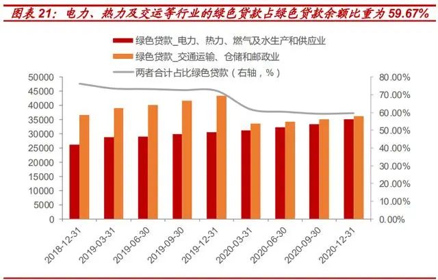 我國(guó)綠色金融體系以間接融資為主。根據(jù)中國(guó)人民銀行披露,截至 2020 年底,本外幣綠色貸款余額約為 12 萬(wàn)億元,同比增速為 16%。其中, 電力、熱力及交運(yùn)等行業(yè)的綠色貸款占綠色貸款余額比重為 59.67%。我國(guó)發(fā)展綠色金融以來(lái),致力于建立起校正環(huán)境污染和溫室效應(yīng)等負(fù)外 部性的經(jīng)濟(jì)機(jī)制,對(duì)企業(yè)減輕環(huán)境耗損的經(jīng)營(yíng)行為給予相應(yīng)的激勵(lì),最 終阻斷企業(yè)的環(huán)境套利行為。我們預(yù)計(jì),按照 16%的增速發(fā)展速度保持 不變,綠色金融規(guī)模在未來(lái)五年達(dá)到 100 萬(wàn)億。