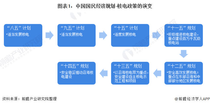核電是我國能源供應體系的重要分支,也是新能源的重要組成部分。根據我國國民經濟“八五”計劃至“十四五”規(guī)劃,國家對核電行業(yè)的支持政策經歷了從“適當發(fā)展”到“積極推進發(fā)展”再到“安全穩(wěn)妥發(fā)展”的變化。