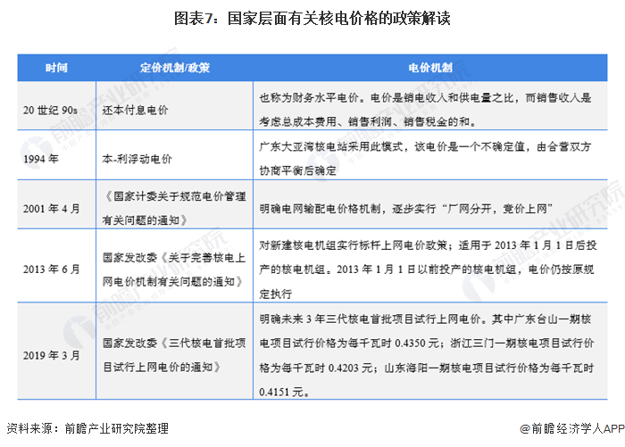 在核電電價方面,我國主要經歷了“還本付息電價”至“標桿上網電價”變化。2013年6月,國家發(fā)改委發(fā)布了《關于完善核電上網電價機制有關問題的通知》,其中明確:對新建核電機組實行標桿上網電價政策;2019年3月,國家發(fā)改委印發(fā)《三代核電首批項目試行上網電價的通知》,明確未來3年三代核電首批項目試行上網電價。