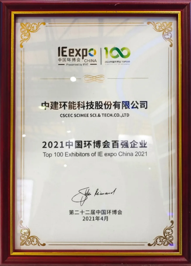 中建環(huán)能榮獲“2021中國(guó)環(huán)博會(huì)百?gòu)?qiáng)企業(yè)”稱號(hào)。本次展會(huì)參展企業(yè)2157家,180家企業(yè)進(jìn)入初選名單,最終100家企業(yè)入圍,約占參展企業(yè)的4%。這代表了本屆展會(huì)營(yíng)收多實(shí)力強(qiáng)的優(yōu)質(zhì)企業(yè)。