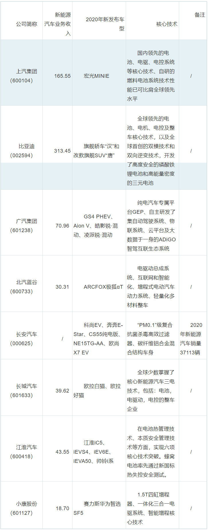 2、新能源汽車行業(yè)上市公司業(yè)務(wù)布局對比