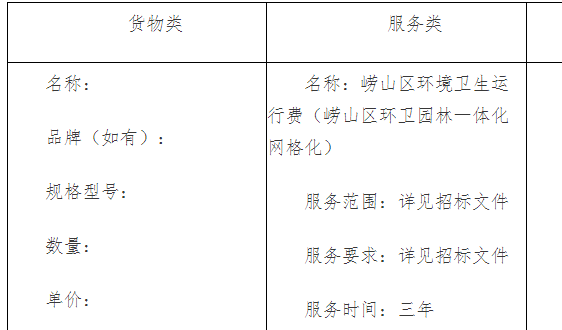 二、項目名稱:嶗山區(qū)環(huán)境衛(wèi)生運行費(嶗山區(qū)環(huán)衛(wèi)園林一體化網格化)