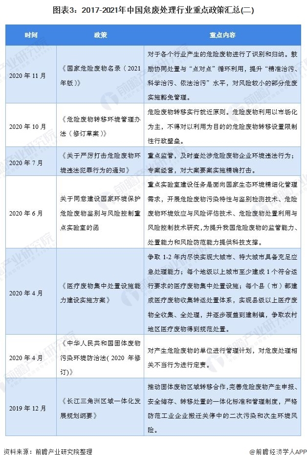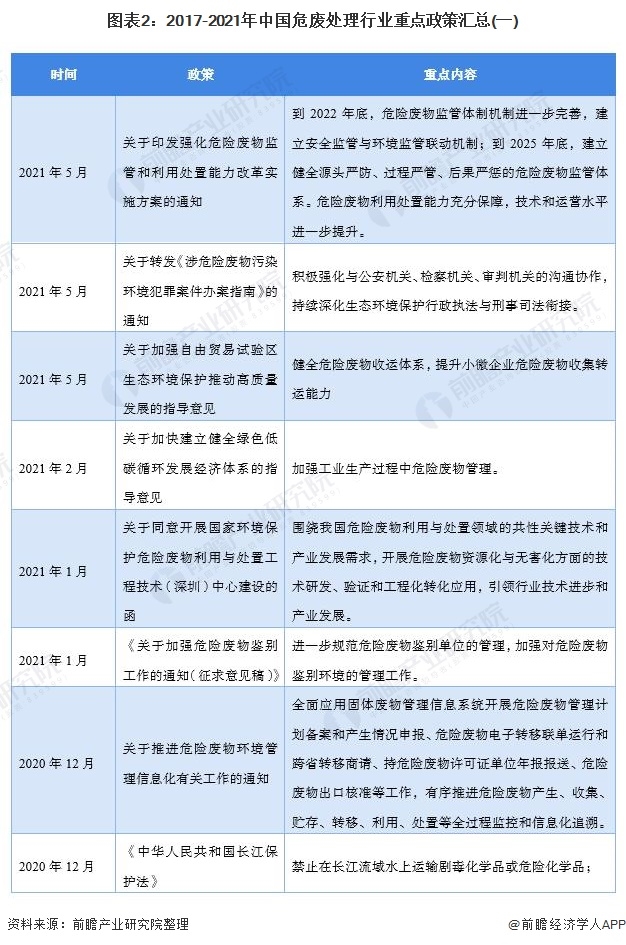 本文核心內(nèi)容:中國危廢處理行業(yè)政策匯總、中國危廢處理行業(yè)發(fā)展規(guī)劃、2021年重點(diǎn)省市危廢處理政策匯總等