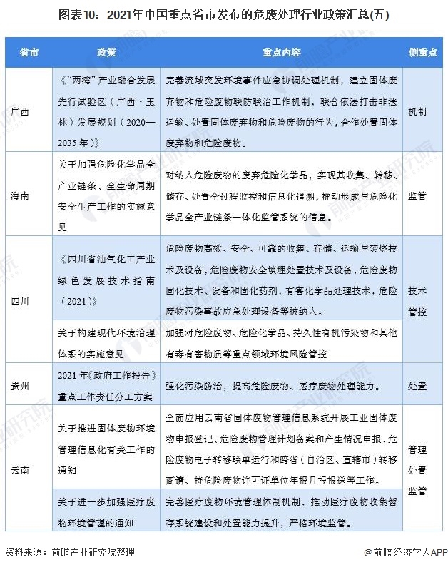重點(diǎn)省市危廢處理最新推動政策匯總