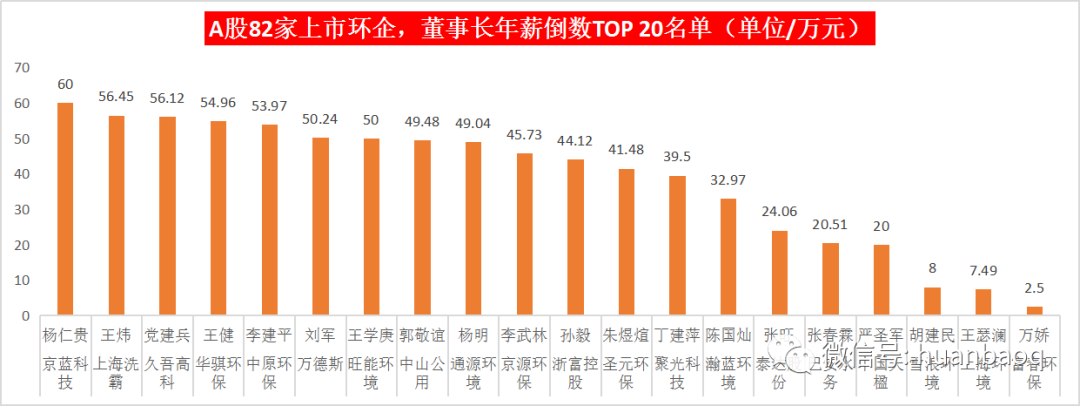 圖三:A股82家上市環(huán)企,董事長年薪排名前TOP20